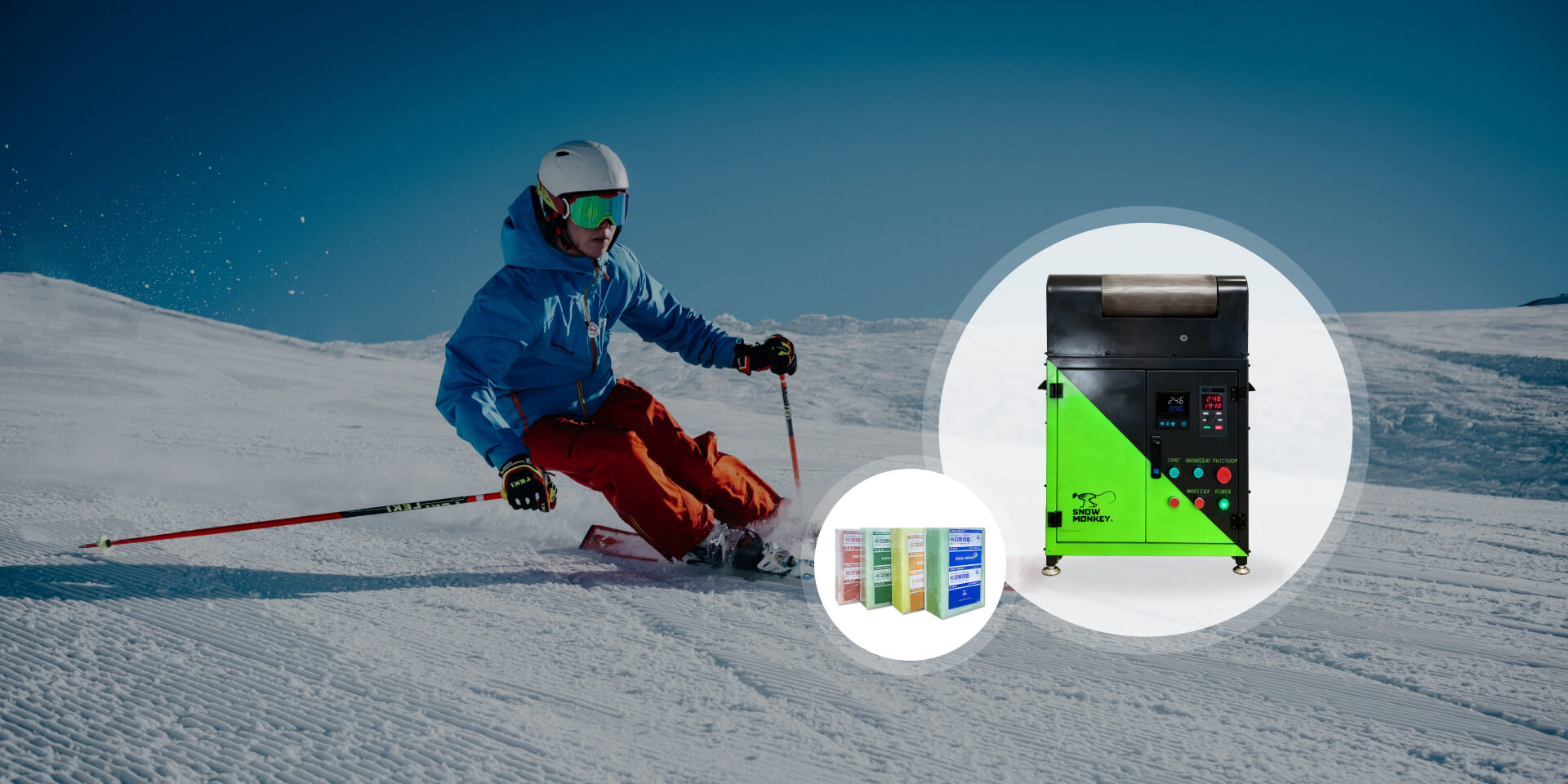 SNOW MONKEY Waxing And Polishing Machine is compatible with special basic wax, with extremely low cost. Ski maintenance is no longer expensive.